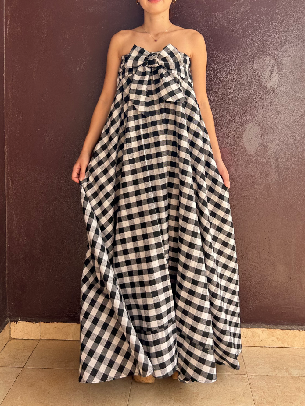 Vichy | Natural-textured check fabric (main material: cotton-linen blend)