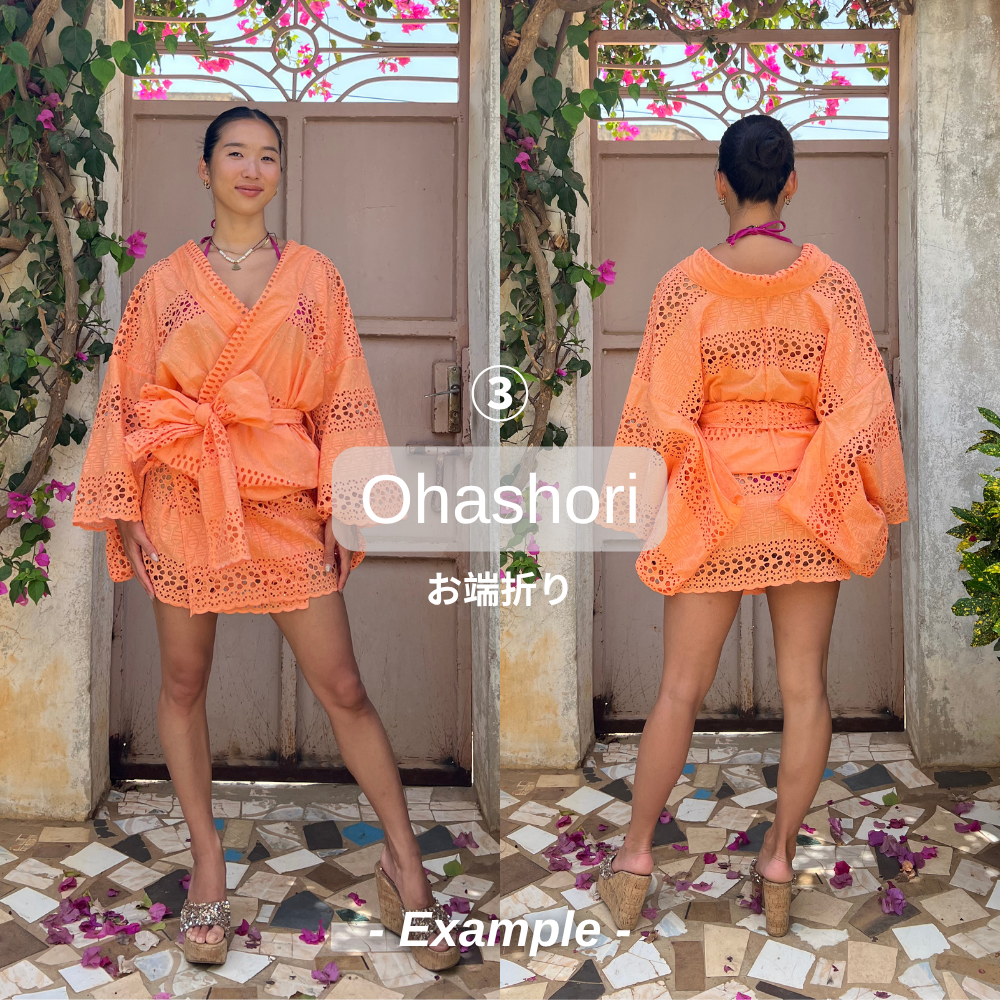 (3) Ohashori: A traditional way for Japanese women to wear a yukata. It is completed in three steps by simply tying the same colored strings three times.