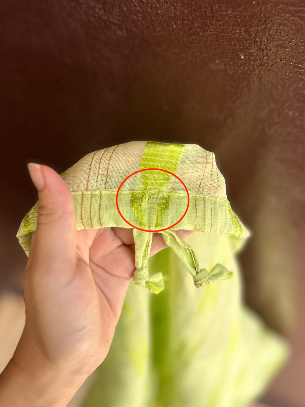紐の内側に小さなほつれ、後ろ見頃の裾に縫い跡がございます。(どちらも内側にありますので着用や見た目には問題ないですが、気になる方はご遠慮いただけますと幸いです。)※写真赤丸参照