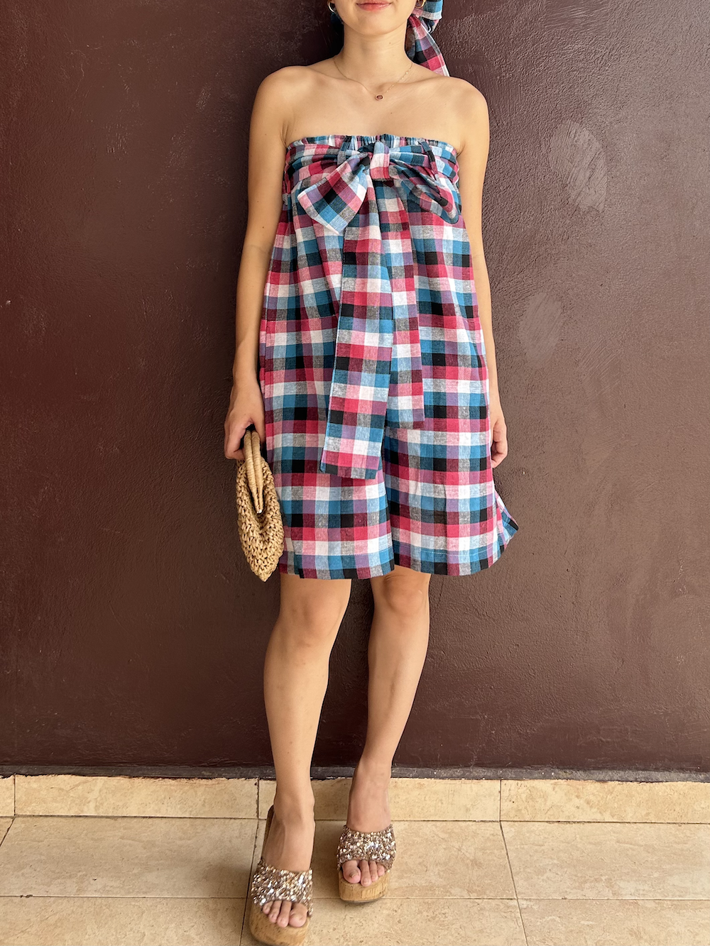 ピンク・青・白が混ざった淡めのチェック柄は、
