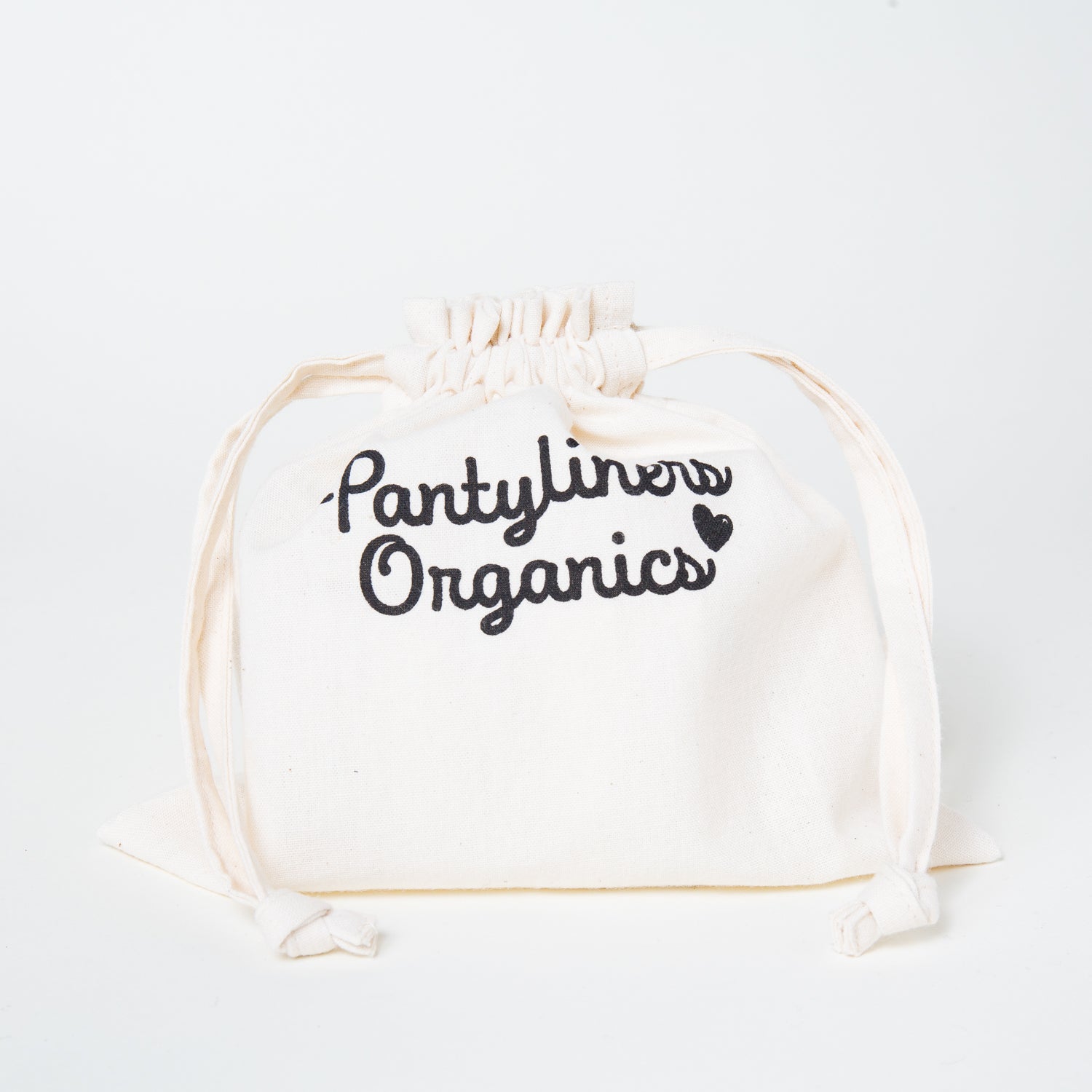 大切な家族、友人、そしてパートナーへのプレゼントや、初めて使用する方のスターターセットとして。Pantyliners Organicsのデザイン巾着とお試し用洗剤を一緒にセット