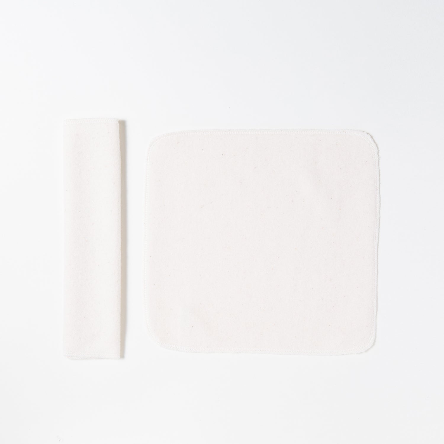 オリジナル素材のオーガニックコットンパイルを起毛した生地。一枚仕立ての折りたたんで使用するシンプルな四角い形です。通気性もよく、暖かく、柔らかな肌触りは頬ずりしたくなる程の気持ちよさ。