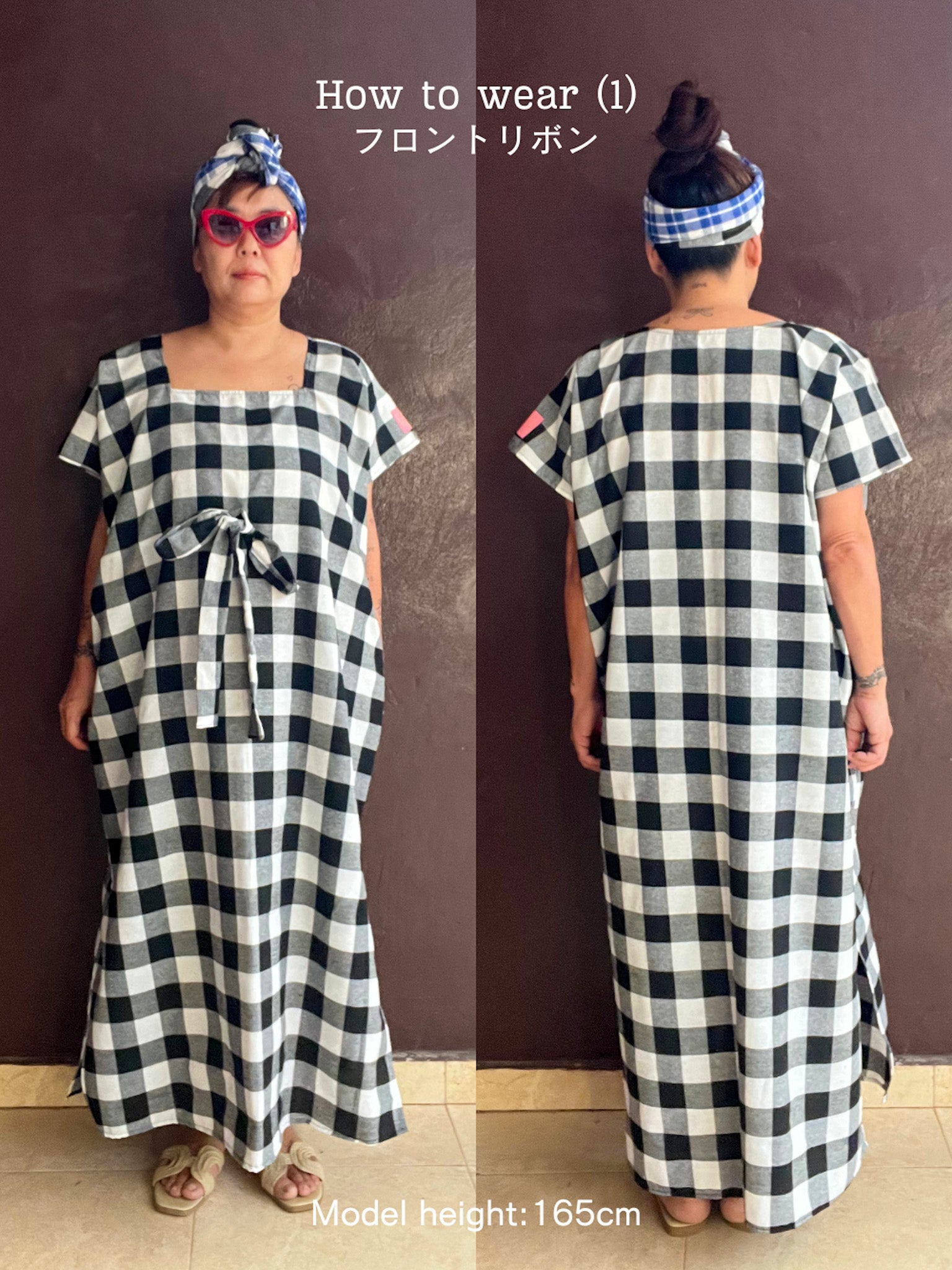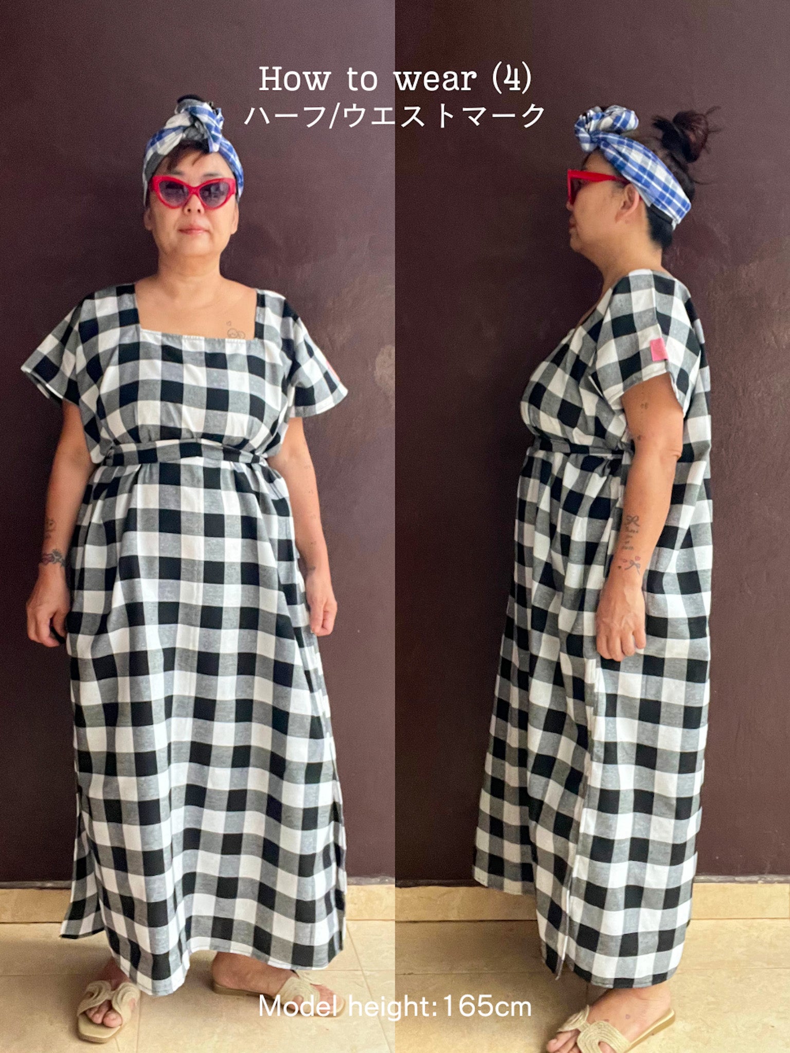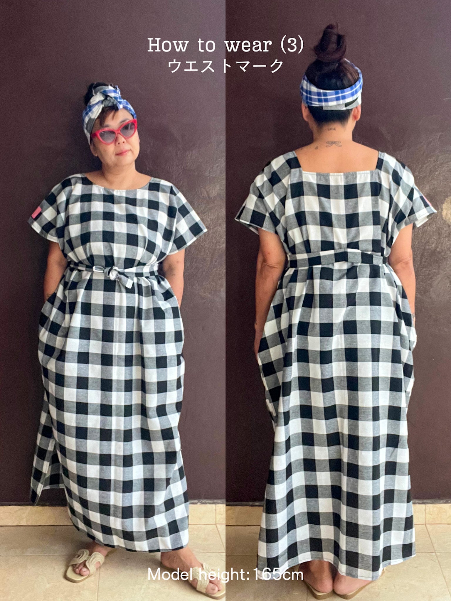 (2)4通りの着方 [フロント/バックリボン/ウエストマーク/ハーフウエストマーク]