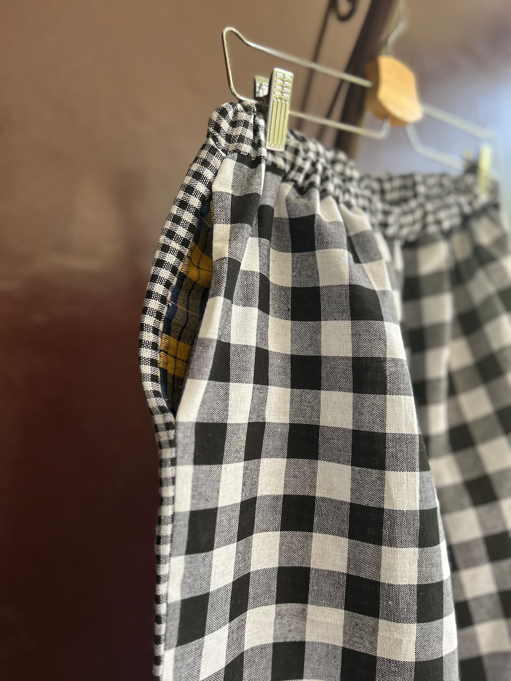 素材は綿麻混合のセネガル伝統生地「Vichy」。