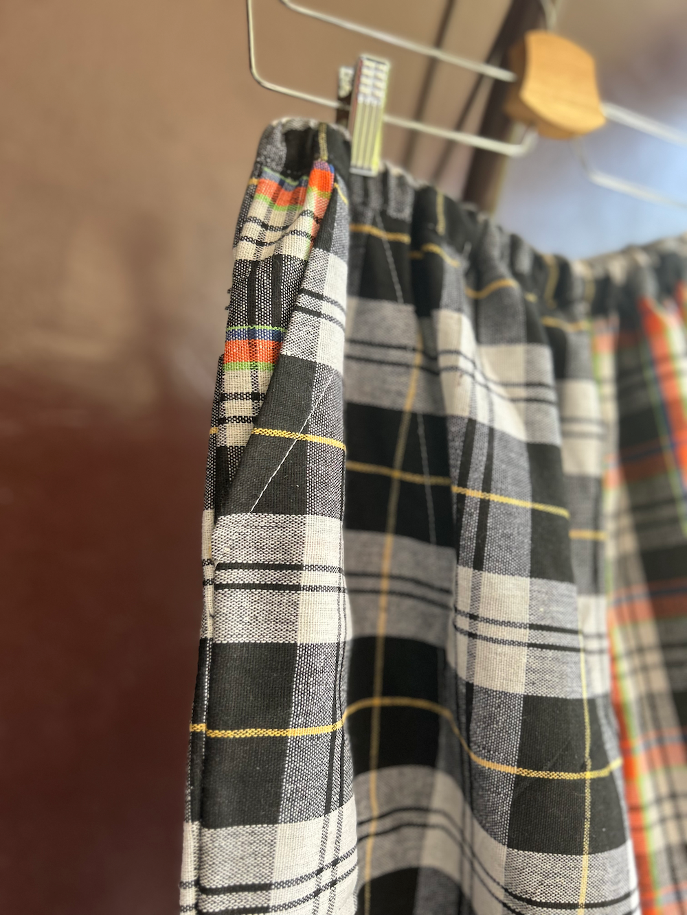 素材は綿麻混合のセネガル伝統生地「Vichy」。