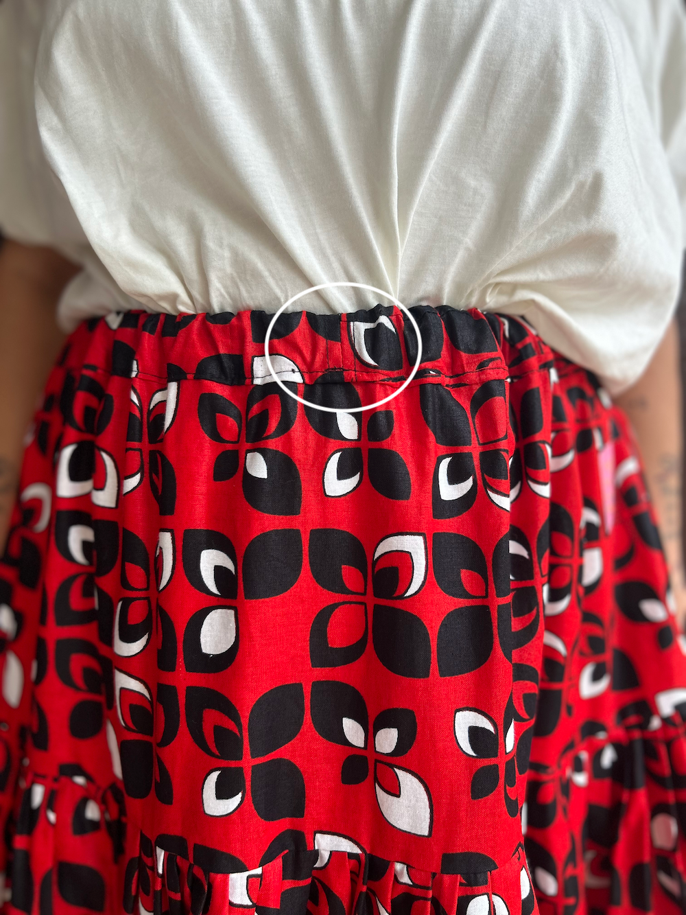※お尻付近、ウエスト正面に縫い跡あり(写真白丸参照)