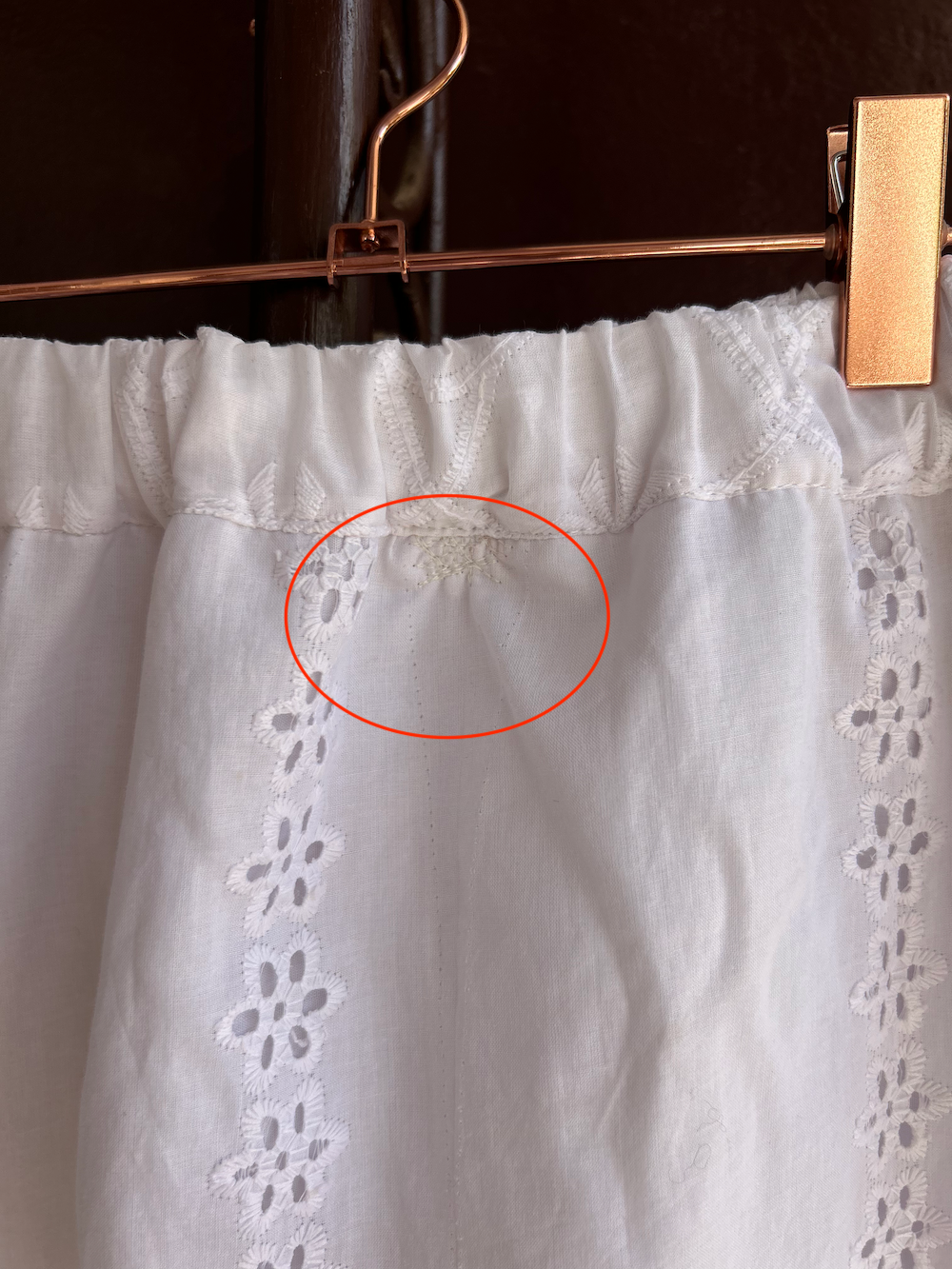 ・後ろ見頃右肩部分にアンティークレースならではの、わずかな黄ばみがある部分がございます(写真赤丸参照)