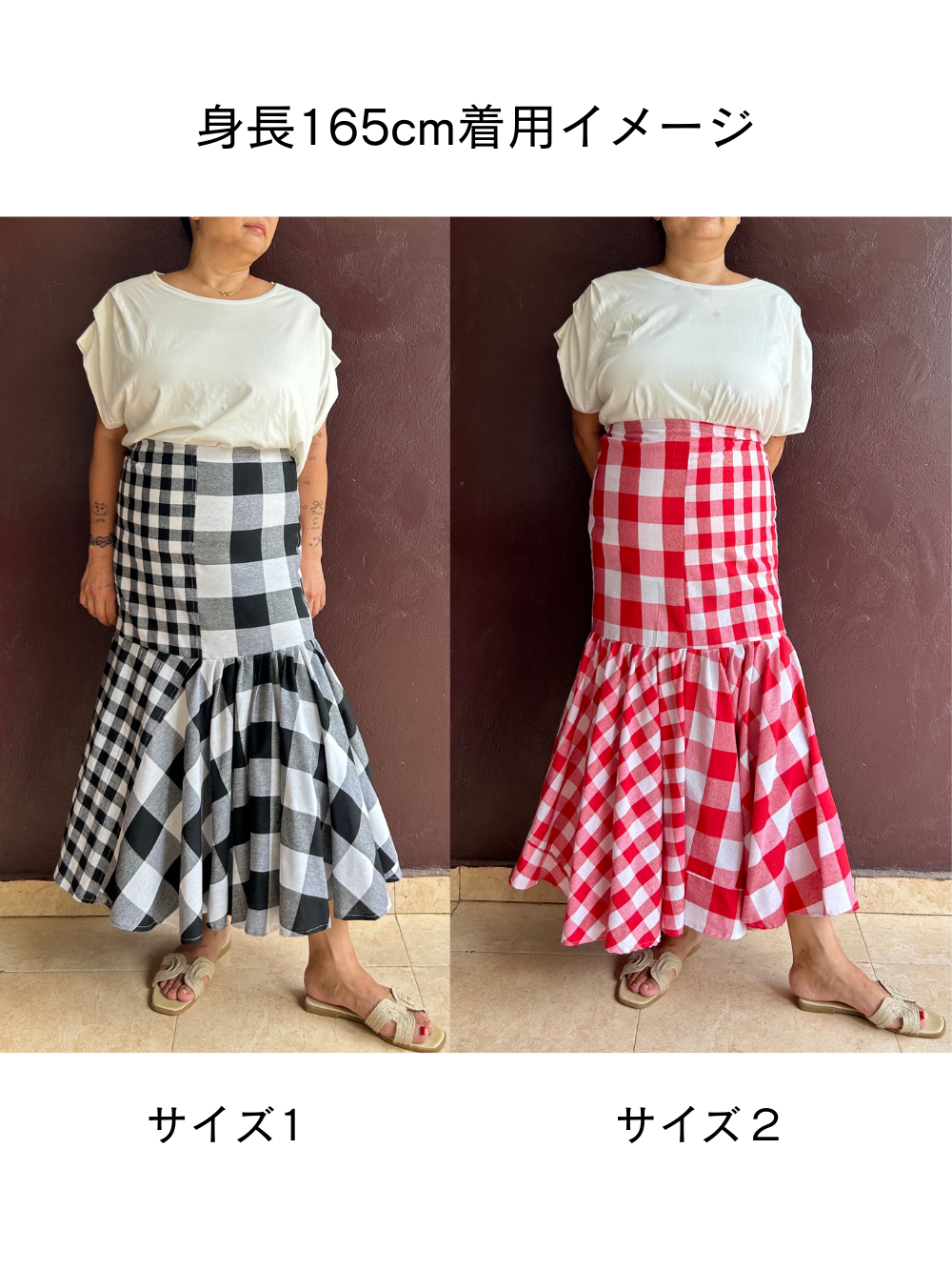上半分はピタッとしたデザインで、下はサーキュラースカートに。フリルが膝上あたりから始まっているので、歩きやすさも◎