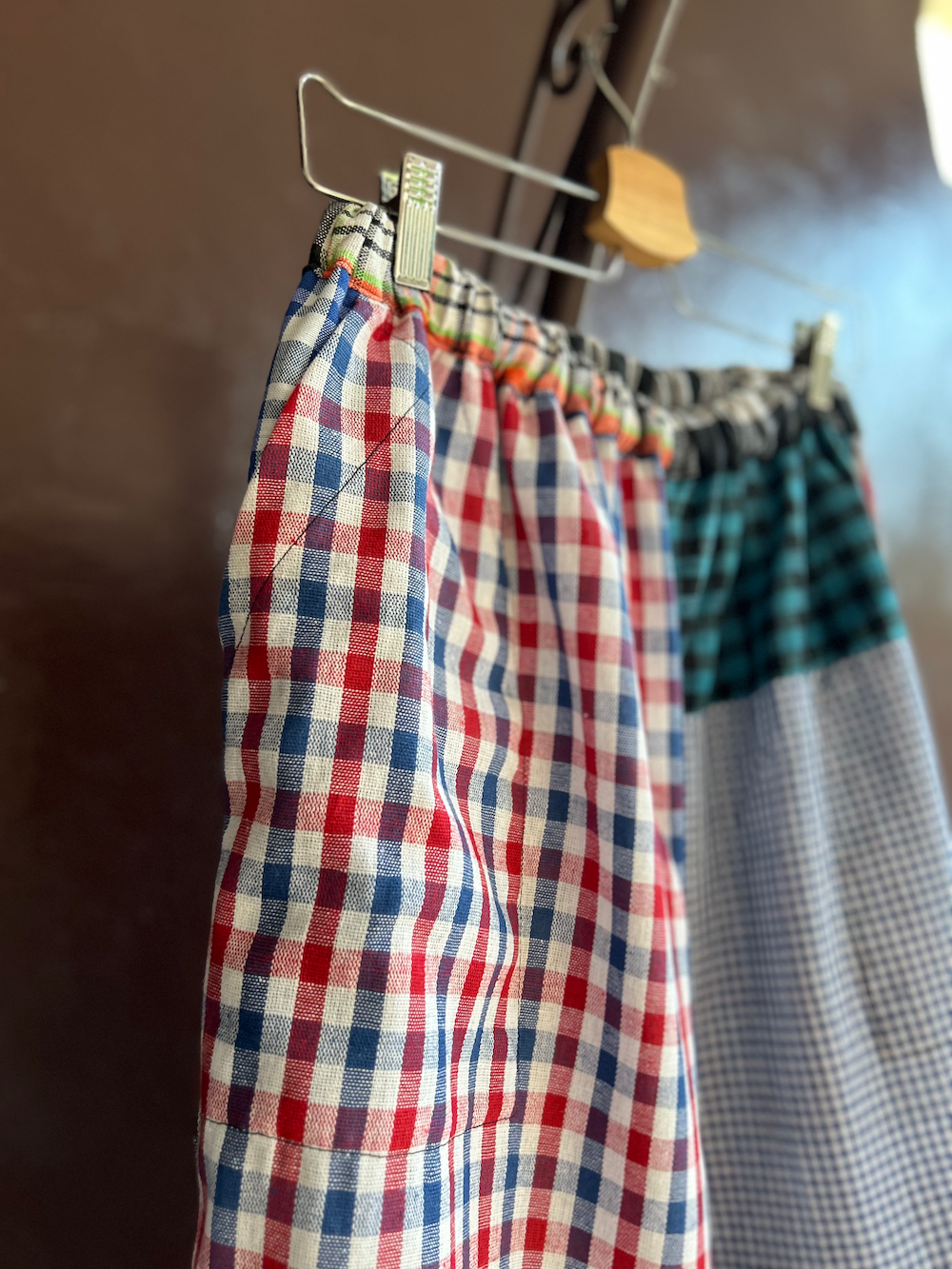 素材は綿麻混合のセネガル伝統生地「Vichy」。