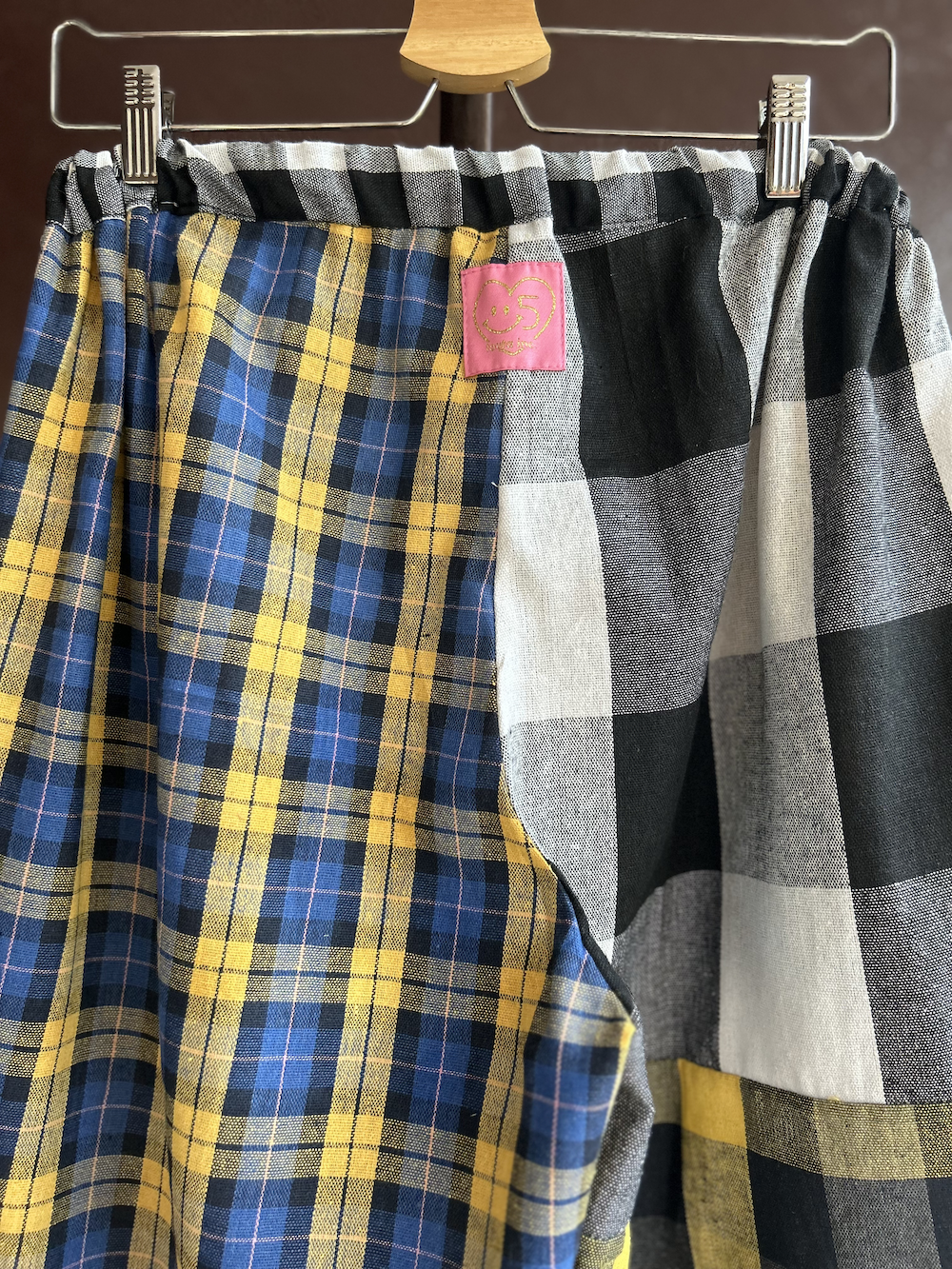 素材は綿麻混合のセネガル伝統生地「Vichy」。