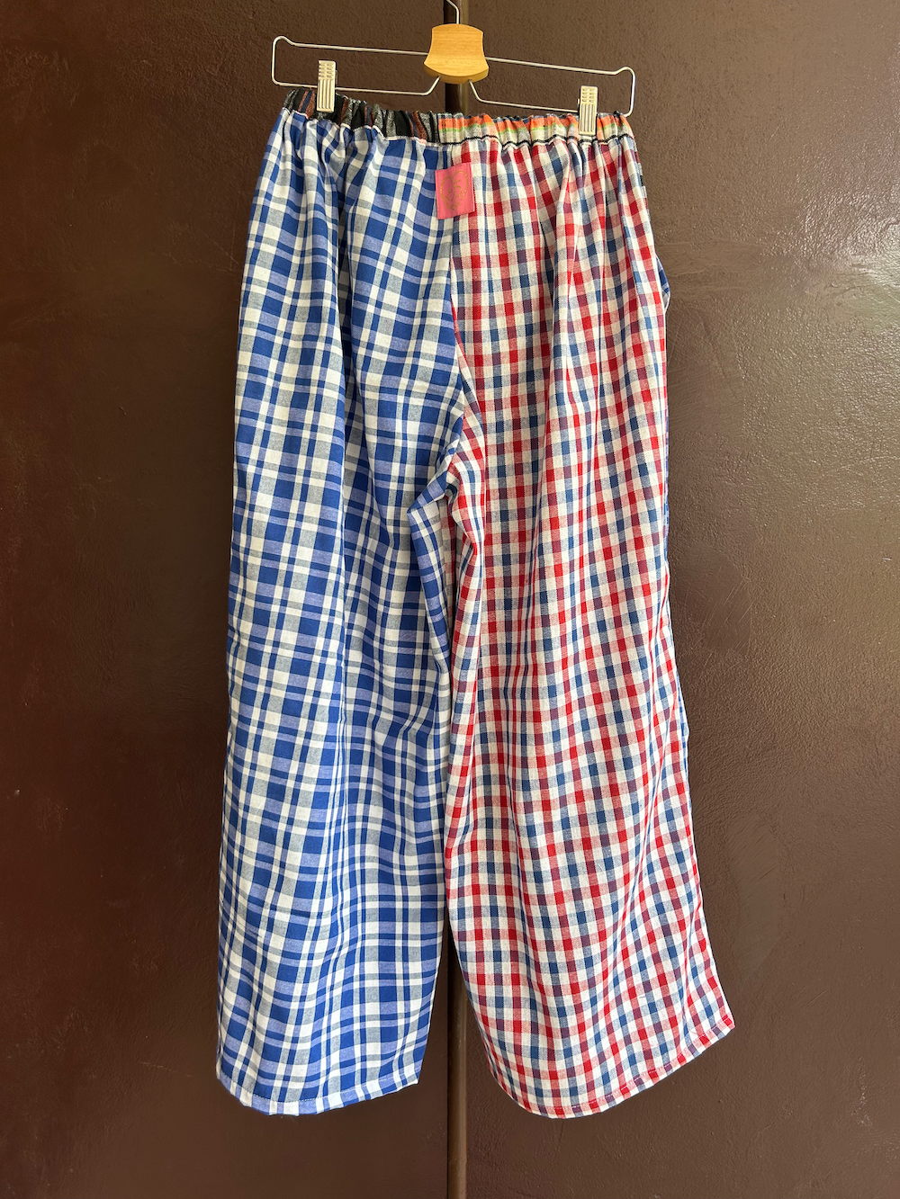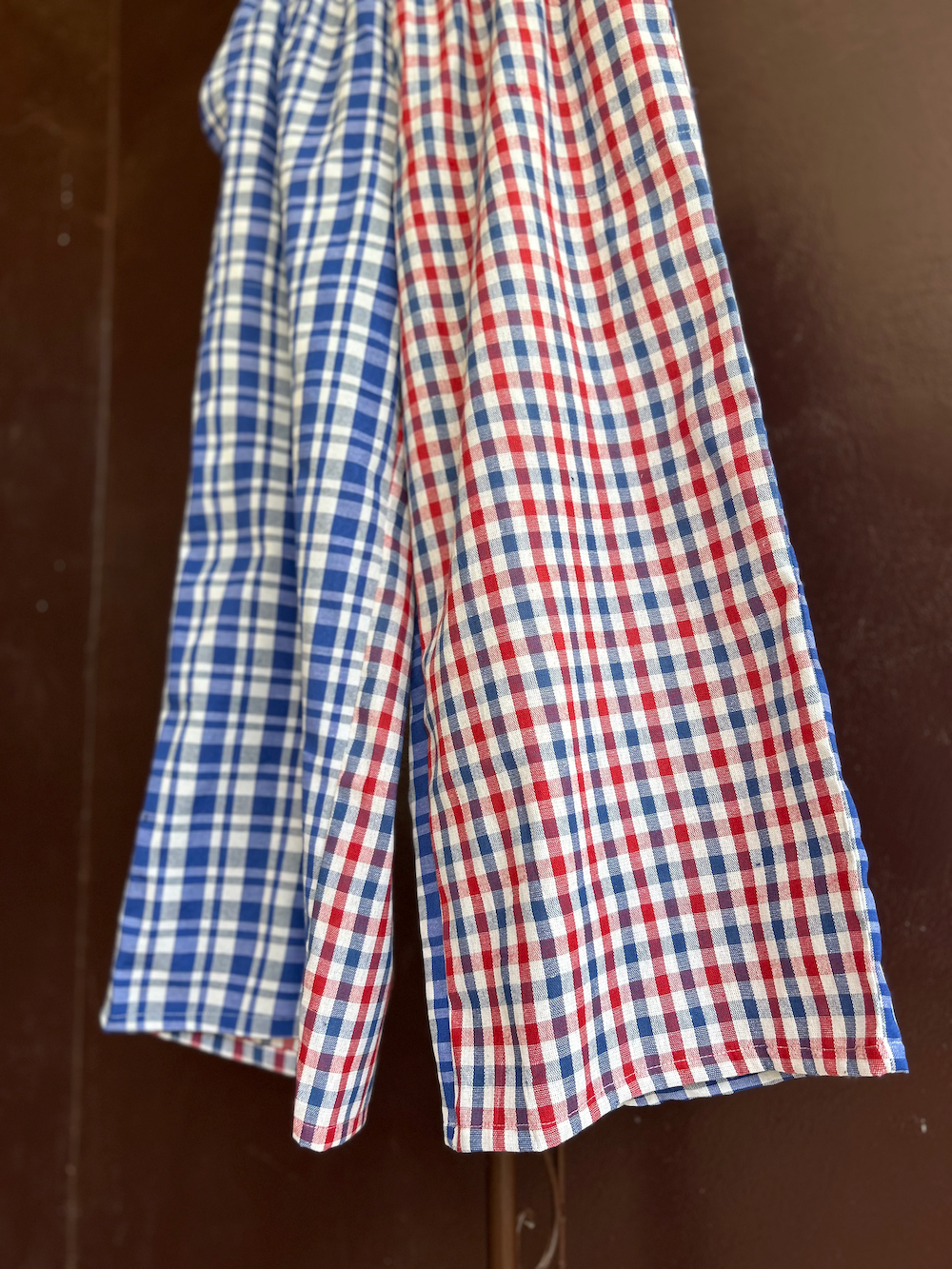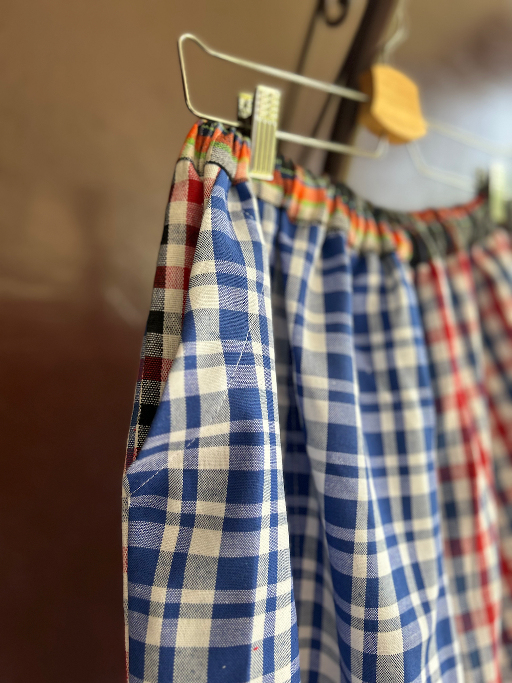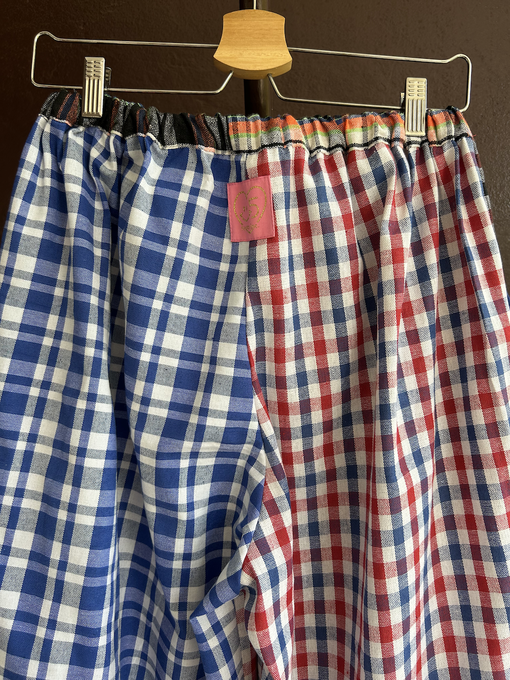 素材は綿麻混合のセネガル伝統生地「Vichy」。