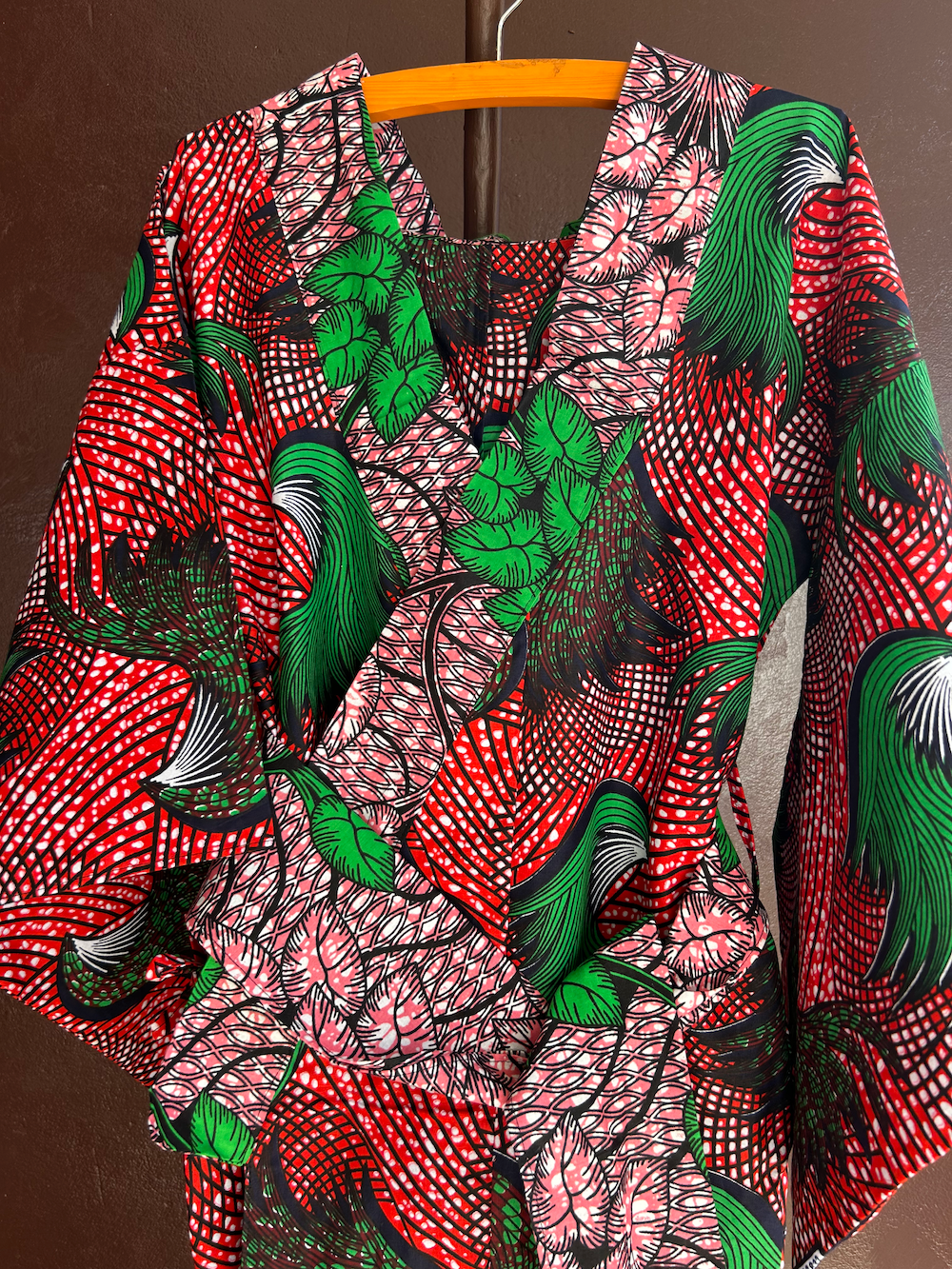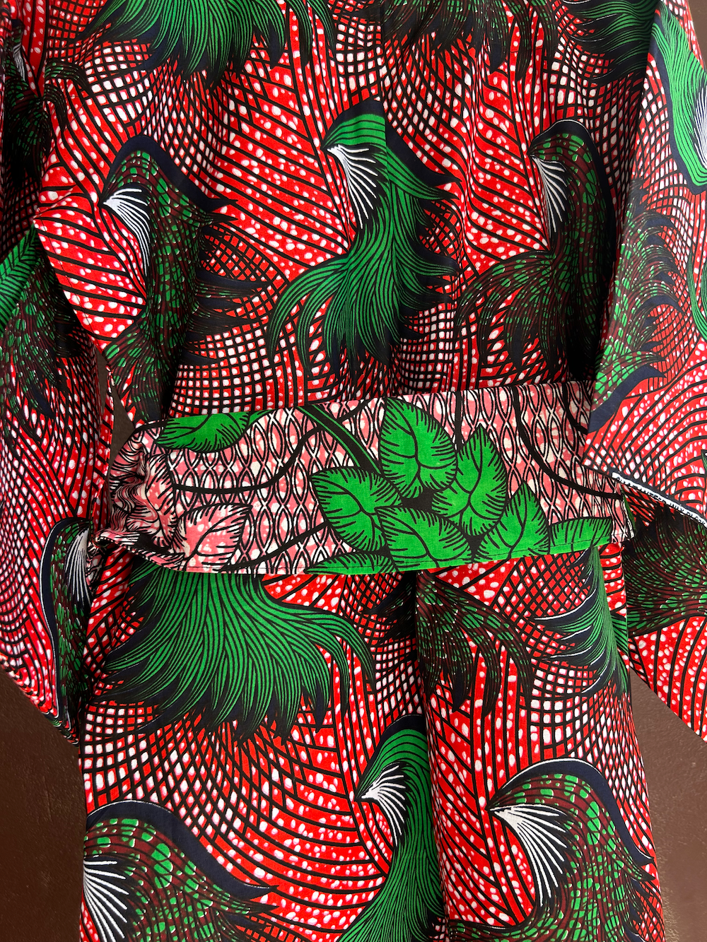 鮮やかで大胆な色彩と力強いパターンは、まさにアフリカンワックスの真骨頂。存在感のある佇まいで、街でも旅先でも「自分らしさ」をナチュラルに引き立ててくれます。